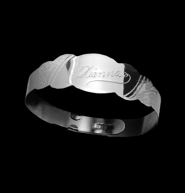 Classic styled Baby Keepsake Bracelet in Stainless Steel with a Victorian pattern.