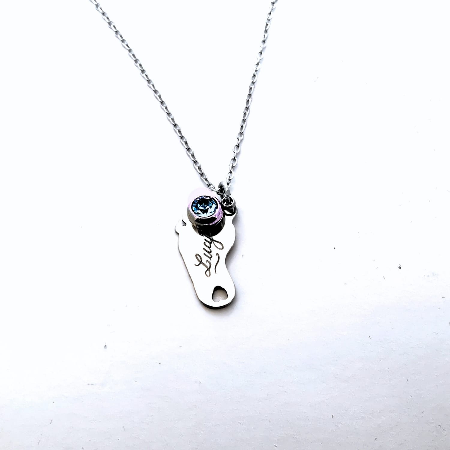 Stainless Steel Foot Woman’s Necklace with a Rhinestone on a 500mm Stainless Steel Link Chain.