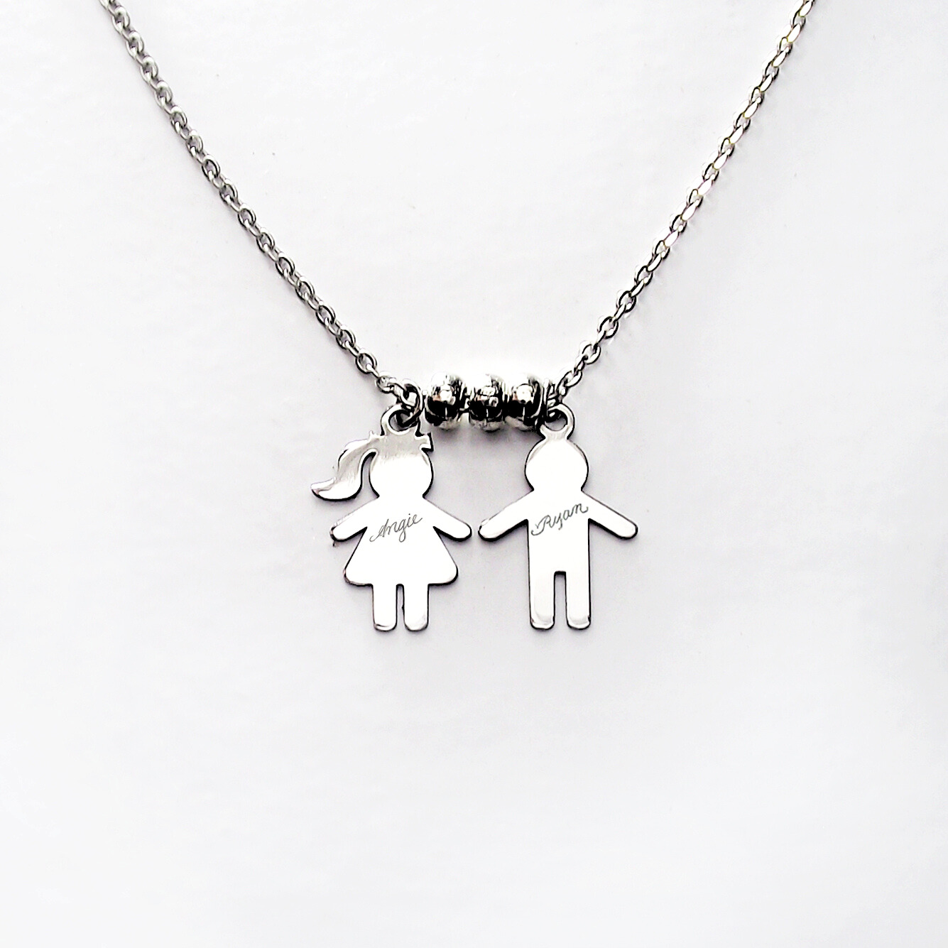 Stainless Steel  Woman’s Necklace with a Boy and a Girl Charms on a 500mm Stainless Steel Link Chain,