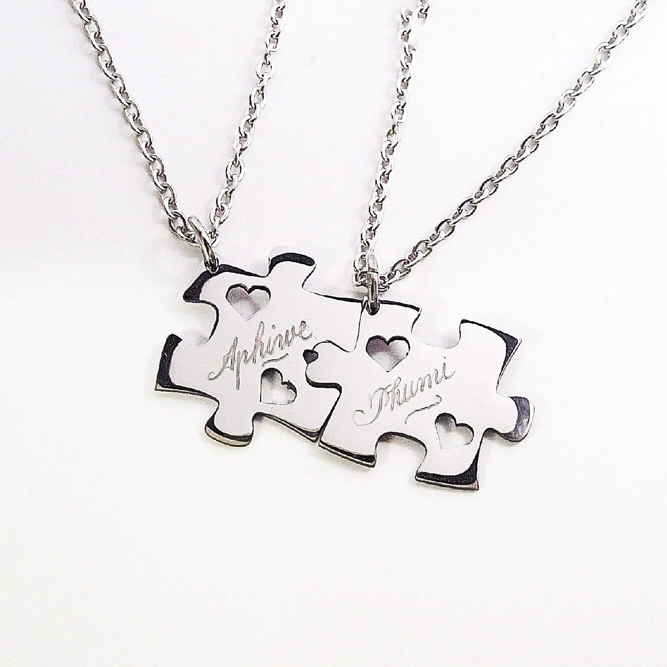 2 x Stainless Steel Jigsaw Pieces on a 500mm Stainless Steel Link Chain each.
