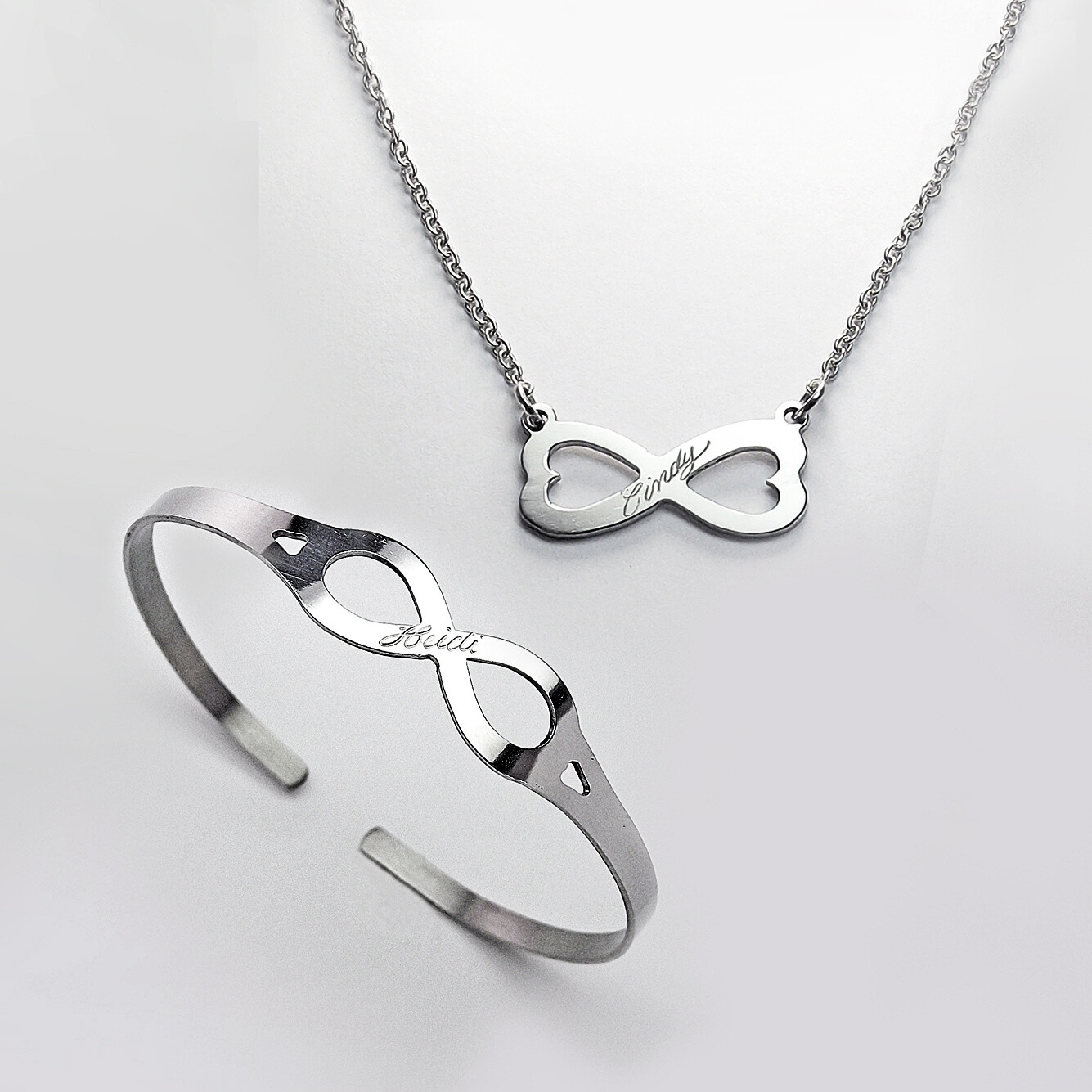 Stainless Steel Infinity Pendant and Cuff Bracelet.